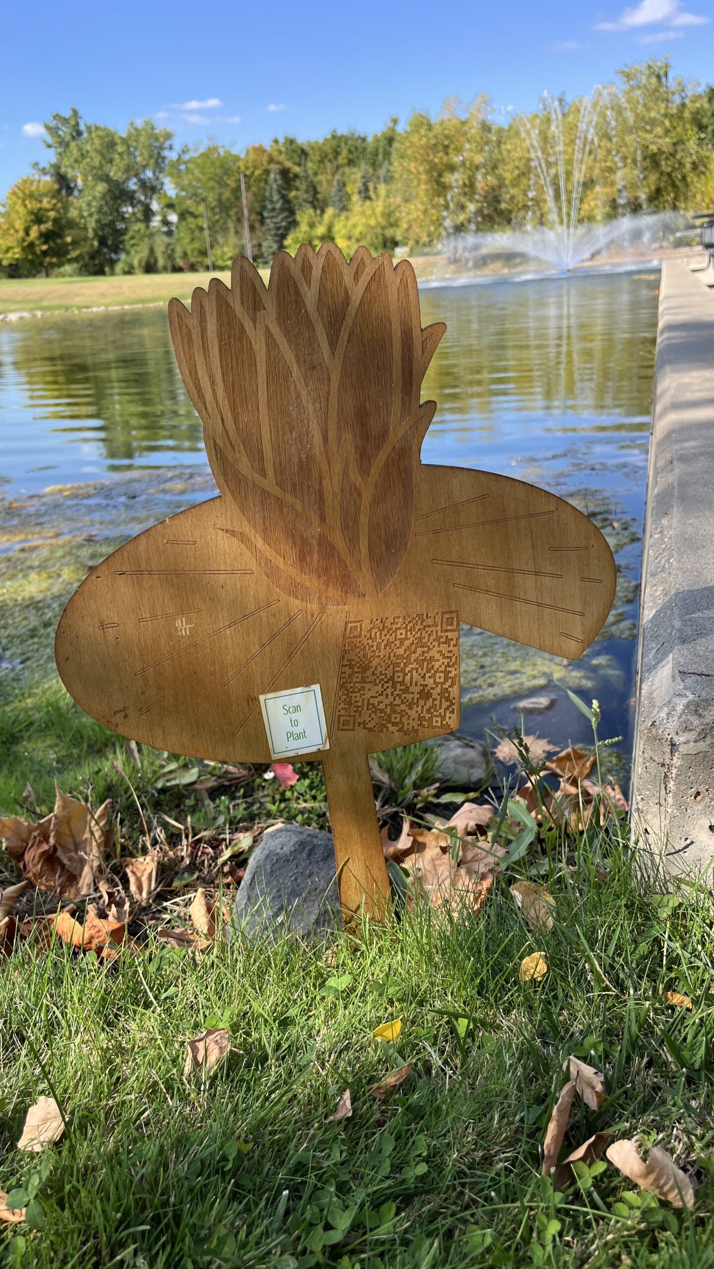 Overview: FloARra creates a speculative future in which our campus is reinhabited with native plants. Participants grow plants in this scene by scanning QR codes placed on wooden silhouettes of native flora across campus. By blending technology, art, and ecology, FloARra immerses the campus community in a practice that highlights possibilities in this landscape. The multi-user participatory format encourages us to embody the activity and mindset of planting native species and all the complexities of this practice.